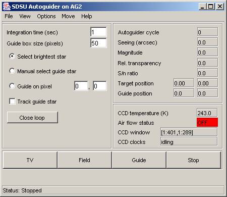 the SDSU autoguider control GUI.