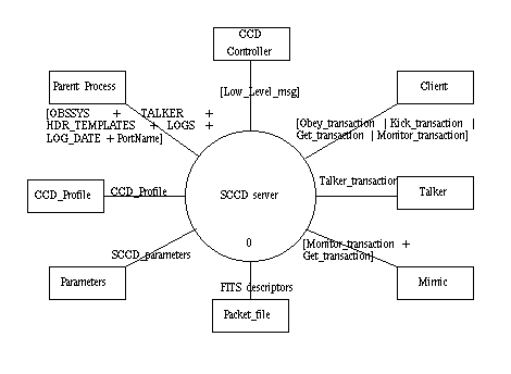 Figure 1. is the context diagram for the SCCD server. The primary data and control source is the CCD controller itself.