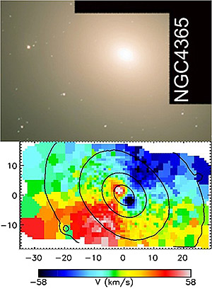 Virgo elliptical NGC 4365 taken with the Hubble Space Telescope. Below is shown the SAURON
