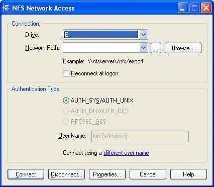 Open the NFS Network access window