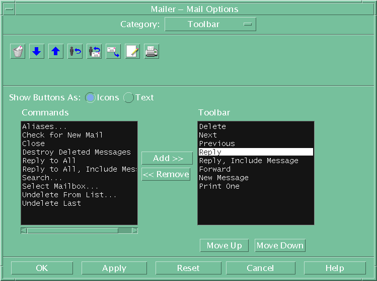 Alternatively click on the mail-tray icon in the CDE tool bar and configure it using options All the recommended settings are provided for the 11 sections - but you need only do 3 to get started You can if you wish copy the and then fine tune it using CDE mail "Options" menu.