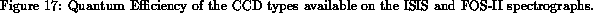 The table below summarises the characteristics of the types of CCD chips in current use for all instruments at the WHT. Availability of CCDs changes frequently, and updates to this information will be published regularly in Gemini. At the time of writing the CCDs available on the two arms of ISIS are: EEV3 and EEV6 which are EEV P88300s; TEK1 which is a Tektronix 1024 square; and GEC5 which is a GEC P8603. In the very near future EEV8, an EEV P88500 will become available. The CCD in FOS-II is currently a GEC P8603.