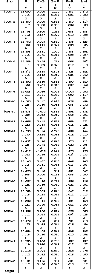Tables 9 - 14 below give the positions, V magnitudes and colours for the 6 Davis sequences, while Figures 9-14 are the corresponding finder charts.