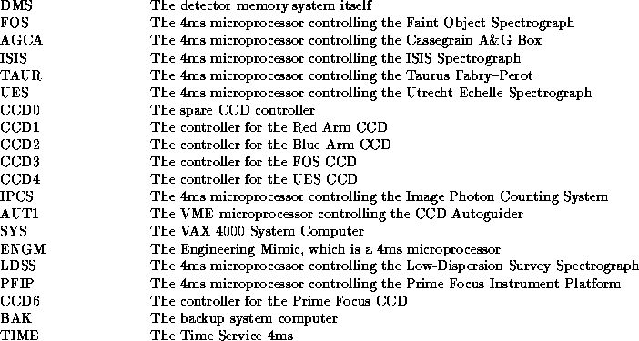 If these simple remedies do not work then technical assistance should be sought. To run the observing and data taking system the minimum configuration is DMS, AGCA or PFIP, SYS, AUT1 and the relevant CCD.