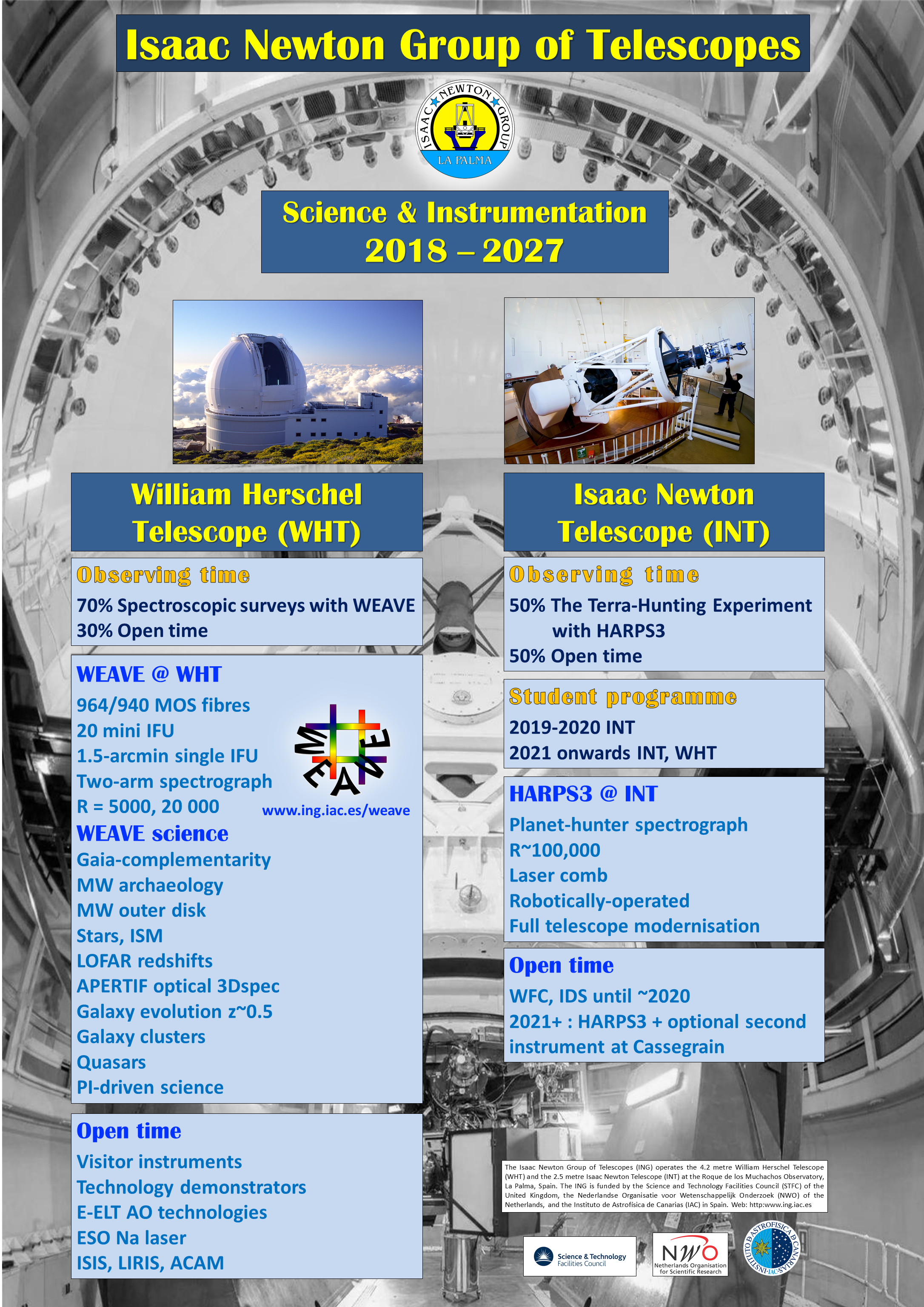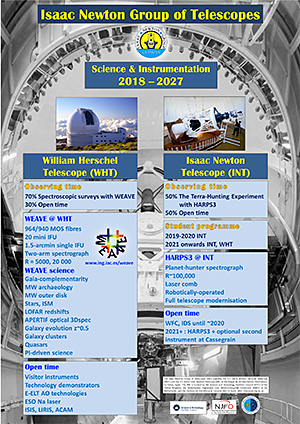 "Low Fringing CCDs: Improving Instrument performance at ING" A. Ridings, O. Vaduvescu, C. Benn, R. Martínez, D. Cano Fourth Science with the GTC Meeting. Santa Cruz de La Palma, 16-18 November 2011. "Visiting Instruments at the 4.2m WHT" S. A. Rix and C. R. Benn Fourth Science with the GTC Meeting. Santa Cruz de La Palma, 16-18 November 2011. "ACAM - A New Imager / Spectrograph at the William Herschel Telescope" C. Benn, K. Dee, T. Agocs, L. Domínguez Palmero Fourth Science with the GTC Meeting. Santa Cruz de La Palma, 16-18 November 2011. "Student training at the telescope in the 10-m era" Lilian Domínguez Palmero, Chris Benn, Raine Karjalainen Fourth Science with the GTC Meeting. Santa Cruz de La Palma, 16-18 November 2011. "The kinematics and morphology of the bipolar PN HaTr 4" A.A. Tyndall, D. Jones, M. Lloyd, T.J. O'Brien, D.L. Pollacco, D.L. Mitchell July 2011 "Remote Observing at Isaac Newton Group of Telescopes" Raine Karjalainen and Ian Skillen February 2011 "Physical Conditions in Outflow Quasars" F. Jiménez-Luján, C. R. Benn and J. I. González-Serrano September 2010 "Visiting Instruments at the 4.2m WHT" S. A. Rix, C. R. Benn and M. Santander-García April 2009 "ACAM - A New Imager / Spectrograph for the William Herschel Telescope" Chris Benn, Kevin Dee, Tibor Agocs June 2008 "Astrophysics on the edge: New Instrumental Developments at the ING" M. Santander-García, P. Rodríguez-Gil, S. Tulloch & R. G. M. Rutten VIII reunión científica de la Sociedad Española de Astronomía, Santander, 7-11 July 2008 "Monte Carlo Modeling of L3 Detectors in High Time Resolution Applications" Simon Tulloch July 2008 "On-sky performance of the tip-tilt correction system for GLAS using an EMCCD camera" Jure Skvar, Simon Tulloch July 2008 "Optomechanical commissioning of the GLAS Rayleigh laser guide star for the WHT" Olivier Martin, Tibor Agócs, Diego Cano, Thomas Gregory, Michiel van der Hoeven, Paul Jolley, Carlos Martín, Tim Morris, Sergio Picó Renee Pit, Juerg Rey July 2008 "Optimisation of the range gating and calibration processes on the GLAS Rayleigh Laser Guide Star at the WHT" Olivier Martin, Don Carlos Abrams, Tibor Agócs, Chris Benn, Craige Bevil, Diego Cano, Nigel Dipper, Thomas Gregory, Juan Carlos Guerra, Tim Morris, Richard Myers, Sergio Picó, Samantha Rix, René Rutten, Jure Skvarc, Simon Tulloch July 2008 "Modelling the suitability of EMCCDs in spectroscopic applications" Simon Tulloch June 2008 "THELI - A pipeline for UV to mid-IR imaging data reduction" Mischa Schirmer (ING), Thomas Erbern (Argelander Institute for Astronomy, Bonn University) January 2007 "OASIS 3D Spectroscopy of P Cygni " Richard Parker, Samantha Rix and Danny Lennon RAS National Astronomy Meeting 2006, Leicester, 3-7 April 2006 | ||||||||||||||||||||||||||||||||||||||||||||||||||||||||||||||||||||||||||||||||||||||||||||||||||||