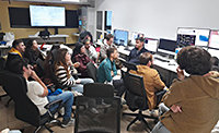 Several well-known Spanish writers visit the ING as part of the IAC outreach programme "En un Lugar del Universo". From left to right, top to bottom: Elsa López, Rosa Montero, Juan Cruz, Antonio Tabares and Juan Madrid, shown around by ING staff.