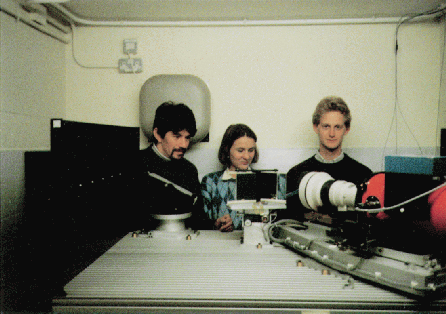 ESA-MUSICOS first light on first night at INTThe first science exposure was obtained at about UT 01:00 April 30 1996. The image shows a 5 sec integration on alpha Boo. An extracted order at about 5800 Å is shown This second copy of the MUSICOS spectrometer has been built at ESA-ESTEC by Bernard Foing, Thierry Beaufort, and Eric Stempels (Leiden). The science team has been led by Rudolf Le Poole, and for this commissioning run has included Jeroen de Jong, Philippe Gondoin and Joana Oliveira. Local support was provided by Daniel Mathews, Bart van Venrooy, Claudio Moreno and members of the ING staff. Results and future plansThe technical operations, data analysis and scientific results from the commissioning run are described in the theses of Joana Oliveira and Eric Stempels, and in papers in the litterature.Based on the satisfactory results obtained at INT and on the interest from the community, Bernard Foing has proposed to offer the ESA-MUSICOS spectrometer for collaborative use in semester 97A, and for open use after this period. |