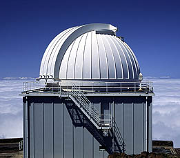 This is the old JKT home page, retained for historical interest. The JKT was in use by the ING observing community from 1984 until July 2003. Over the next decade, it remained part of ING, and was in occasional use for various projects (e.g. SCIDAR characterisation of atmospheric turbulence above the observatory). As of 15 Jan 2014 the JKT is owned by the Instituto de Astrofísica de Canarias (IAC), and is operated by the Southeastern Association for Research in Astronomy (SARA) under agreement with IAC. The JKT resumed operations as a robotic telescope in October 2015. More information can be found in an IAC press release and this paper. IntroductionThe Jacobus Kapteyn Telescope (JKT) has a parabolic primary mirror of diameter 1.0 m, and two interchangeable secondary mirrors. The telescope is usually fitted with the hyperboloid secondary mirror, which gives a conventional f/15 Cassegrain focus. The alternative f/8.06 Harmer-Wynne system uses a spherical secondary and a doublet corrector to give a field of 90 arcmin diameter for photographic astrometry over a wide field. The JKT is equatorially mounted, on a cross-axis mount, which allows operation east or west of the pier. Normally it is east of the pier. The observing limits are currently: